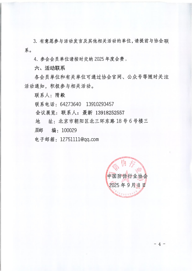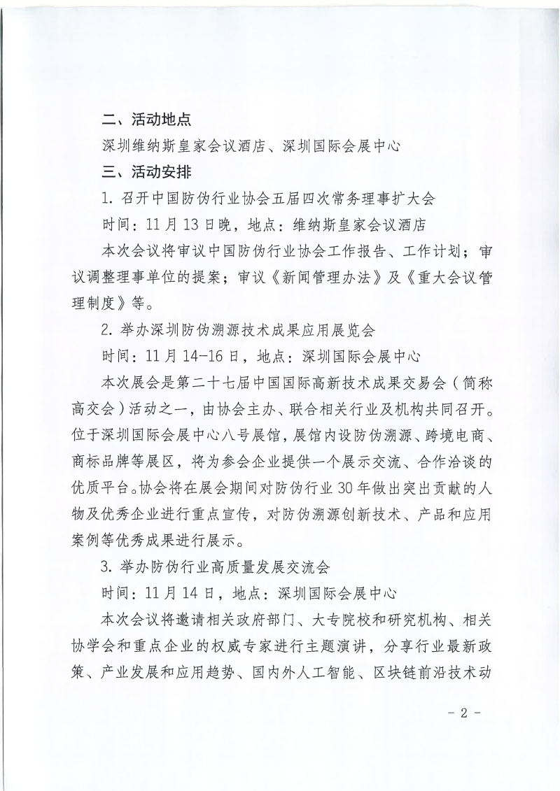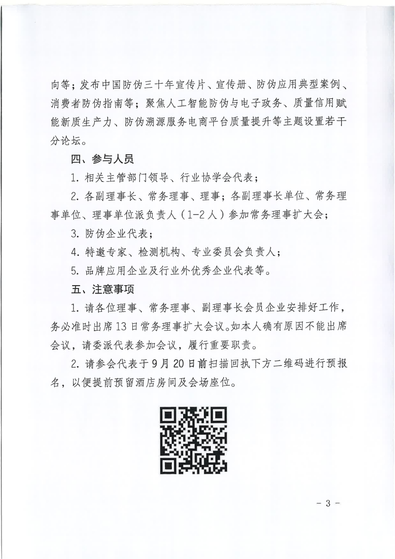 协会拟于2025年11月13日-14日召开协会五届四次常务理事扩大会议,同期举办“2025深圳防伪潮源技术与应用展览会"暨防伪行业高质量发展交流会。请您于9月20日前提交预报名电子回执,以便预留会议房间。